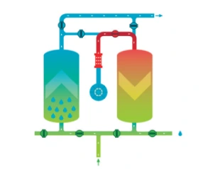 Kai vienas bokštas veikia adsorbcijos režimu, kitas bokštas yra regeneravimo režimu. Adsorbento regeneracijai sunaudojama elektrinio šildytuvo šiluma ir nedidelis gatavo suspausto oro kiekis. Modelyje su nulinėmis oro sąnaudomis regeneruotas oras gali būti perdirbamas.