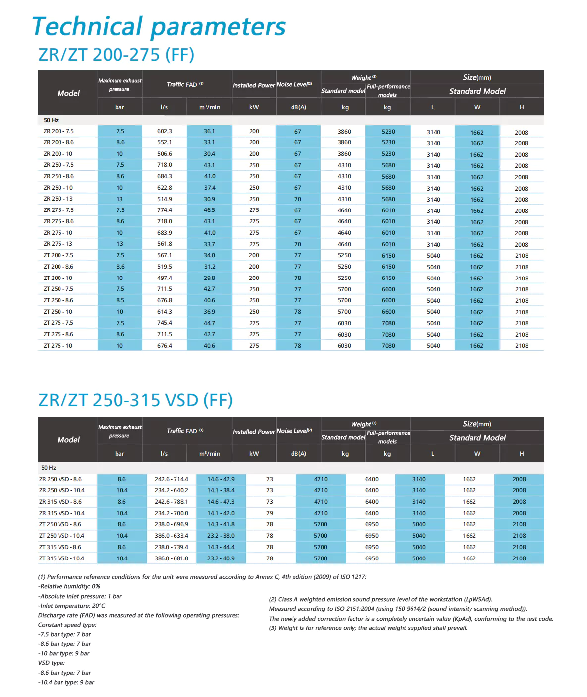 Atlas Copco yra žinomas dėl patvarių alyvos neturinčių sraigtinių oro kompresorių projektavimo ir gamybos, o ZR/ZT serijos sraigtiniai kompresoriai tęsia šią tradiciją. Jie yra išmintingas pasirinkimas pramonės šakoms, kuriose keliami griežti reikalavimai aukštos kokybės orui be alyvos, pasižymintys dideliu patikimumu, saugumu ir mažomis energijos sąnaudomis. Esame profesionalus oro kompresorių gamintojas ir tiekėjas Kinijoje. Sveiki atvykę pasikonsultuoti ir įsigyti.