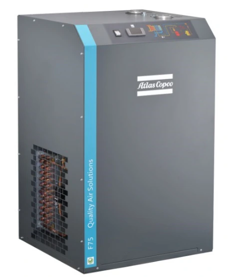 Atlas Copco F tipo šaldomoje oro džiovykloje naudojamas trys viename šilumokaitis, kuris sujungia oro/oro, oro/šaldymo medžiagos ir vandens separatorius. Tai efektyviai pašalina skystą vandenį, atskirtą po aušinimo, ir iš anksto atvėsina suslėgtą orą, pagerindamas šilumos mainų efektyvumą.