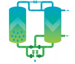 Kol vienas bokštas veikia adsorbcijos režimu, kitas – regeneravimo režimu. Regeneracinėms dujoms reikalinga tam tikra dalis paruošto suspausto oro.